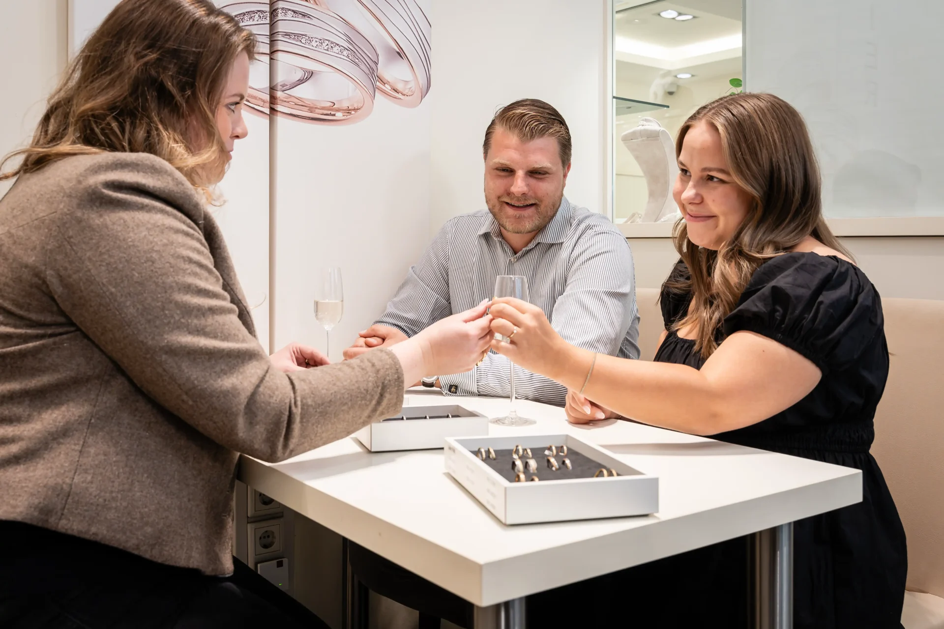 Wer Schmuck kauft, steht oftmals vor einem emotionalen Moment im Leben. Dafür braucht es Vertrauen und Zeit. Genau die nehmen wir uns. Wir stellen die richtigen Fragen und begleiten Sie liebevoll und geduldig auf Augenhöhe.